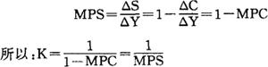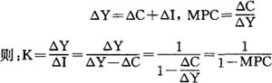 又称“倍数理论”。 乘数概念最早由英国经济学家卡恩(R.E.Kahn)在1931年提出,凯恩斯(J.M.Keynes,1883-1946)在《货币、利息与就业通论》中进一步发挥而形成乘数原理。投资乘数是作为因变量的国民收入增量与作为自变量的投资增量的比率,其代数表达式为:  K为投资乘数,△Y为国民收入增量,△I为投资增量。 投资乘数一般大于1,即一笔投资所引起的连锁反应会导致国民收入多倍的增加。 因为国家经济的各个生产部门是互相关联的,某一部门增加一笔投资,不仅会直接增加本部门的收入,而且会连锁增加对第二、第三……等部门产品的需求,从而使整个经济的收入成倍于原投资的增加。 由此可见,投资乘数与边际消费倾向(Marginal Propensity to Consume,MPC,即消费增量在收入增量中所占的比例)是同方向变化的。设△C为消费增量。因:  即投资乘数与边际消费倾向同方向变化。另外,设△S为储蓄增量,则边际储蓄倾向(Marginal Propensity to Saving,MPS)为:  即投资乘数与边际储蓄倾向成反比。 |