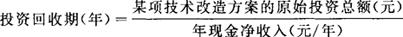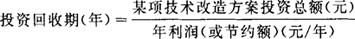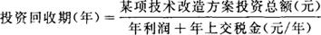 释义 | 投资回收期法 指通过投资回收期的计算和分析,衡量投资经济效益的一种方法。 又称归还法或还本期法。它常应用于开发新技术和技术改造、固定资产购置等投资方案的评价和选择。 由于对企业每年所得的收益应包括的内容有不同的理解,故投资回收期有三种计算方法: 1.用每年所获得的利润或节约额补偿原始投资。 国内大多数企业当前常采用此法。 式中:假定年度节约额=单位产品节约额×假定年度计划产量。假定年度是指改造项目实现后一年的时间。 2.用每年所获得的利润和税收补偿原始投资。 国内有些企业也采用此法。 3.用每年所获得的现金净收入,即折旧加税后利润补偿原始投资。 资本主义国家的企业都采用这种方法(见净现值法)。 上述公式均假设每年的利润、税金、现金净收入相等。如果各年收入不等,则逐年累计其金额与原始投资总额相比较,即可算出回收期。 |