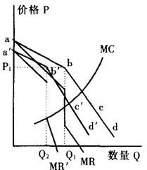 释义 | 折弯的需求曲线 由保罗·M·斯威齐于1939年提出的折弯的需求曲线,用于说明寡头生产者可能出现的价格刚性。 这种解释又被称为斯威齐模型。 模型是这样的(见图a):对于一个寡头生产者而言,他面对两条需求曲线, 若寡头的边际成本MC如图(a),则其最优价格为P1,最优产量为Q1。 (a) 对于折弯的需求曲线,若MC发生如图(b)的变化,由MC0变动到MC1或MC2,则对最优价格不会有什么影响;若需求发生如图(c)的变化,由abc变动到a′b′c′,则对最优价格也不会有什么影响。 在这两种情况下,寡头厂商产品的价格表现出刚性。 (b) (c) |