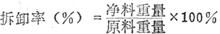 释义 | 拆卸率 又称“净料率”。 烹饪原料经刀工处理后的净重与原料重量的比率。饮食业原料经宰杀、加工、整理后,除去下脚料和废料,剩下的可作配制成品的原料,称为净料。饮食行业内习惯上以“成”或“折”来表示。 其计算公式为: |