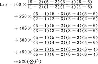 是根据法国著名数学家、力学家拉格朗日所提出的插值多项式来进行统计推算的一种方法。 就是对某现象,如果已掌握其两位以上实际的对应资料(x0y0、x1y1、x2y2……)时,可运用此式计算对应于x点的未知数y的近似值。其插值多项式如下:  如某企业某种产品的产销量及其所对应取得盈利的资料如下: 如某化肥厂对某种正在试制的化肥进行肥效测验,所取得的资料如下表。 试推算施肥量,为每亩5公斤时,相应的某种农作物亩产量。可根据上表资料代入拉格朗日插值多项式来进行计算:   即当每亩施肥量为5公斤时,某种农作物的亩产量估计为520公斤。 |