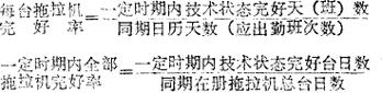 释义 | 拖拉机完好率 反映拖拉机使用、维修和保养工作质量的综合性指标,反映拖拉机的技术状态和可以被利用的程度,指一定时期内技术状态完好日(班)数占日历天数或应出勤班次数的比率,以百分数表示。计算公式为: 拖拉机完好的标准是机器性能良好,正常负荷作业,有关技术指标符合出厂规定;使用中达到三不漏(油、水、气)和五良好(调整、润滑、电器、仪表、紧固);油料消耗正常或不超过规定指标的10% |