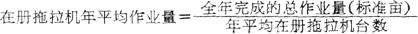 释义 | 拖拉机平均作业量 指一定时期内每台拖拉机平均完成的作业量。 反映拖拉机利用的综合指标。它既可按时、班、工作日计算,也可按月、季、年计算。 拖拉机的年平均作业量是全面反映时间利用和作业效率的综合指标,通常是以每台在册拖拉机的年平均作业量为评价拖拉机利用情况和检查作业计划完成情况的主要指标。 拖拉机年平均作业量的计算公式为: 这一指标通常是分别不同牌号的拖拉机来计算的。为了在不同牌号之间对比和计算全部拖拉机的年平均作业量,可按折合的标准台来计算。 |