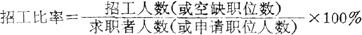 释义 | 招工比率 指招工人数(或空缺职位数)和求职者人数(或申请职位人数)之比。 用百分数表示。资本主义国家反映劳动力市场供需情况的指标。计算公式为: 招工比率等于100%,表明劳动力供求完全平衡;大于100%说明劳动力供不应求;小于100%则说明劳动力供过于求。 |