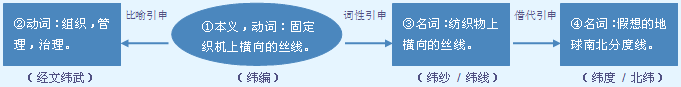 字源解说 韦,既是声旁也是形旁,表示绕城而行。纬,篆文 = (糸,丝)+ (韦,绕城而行),造字本义:比喻将丝线一一横向地固定在织机上。隶书 将篆文的“糸” 写成 。 附 文言版《説文解字》:緯,織橫絲也。从糸,韋聲。 附 白话版《说文解字》:纬,在织机上穿横线。字形采用“糸”作边旁,采用“韋”作声旁。 引申线索