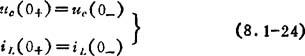 释义 | 换路和换路定律 分析含有动态元件L、C的电路时,电路的结构或元件参数等发生突然变化,称为换路。在换路前后电容两端电压uc和电感中电流iL不能跃变,称为换路定律,也称开闭定律。即 式中 0-为换路前的终了瞬间; 0+为换路后的初始瞬间。 |