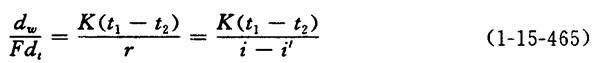 释义 | 接触干燥的干燥速率计算 【公式】 式中 F——干燥面积,即湿纸与烘缸表面接触的面积(m2) K——总传热系数[KJ/(m2.h.℃)] t1——缸内加热蒸汽温度(℃) t2——缸面纸的温度(℃) r——蒸发水汽的热含量(kJ/kg) i——蒸汽的热含量(kJ/kg) i′——缸内排出的冷凝水的热含量(kJ/kg) i′=Ct (1-15-466) C——水的比热[KJ/(kg.℃)],取C=4.1868 t——冷凝水的温度(℃) 其它同上 |