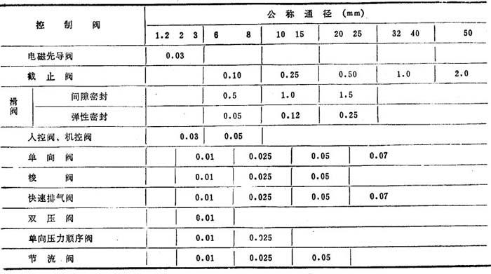 释义 | 控制元件的选择 控制阀的通径,可根据执行元件在工作压力状态下通过的流量应小于表7.11-1规定的额定流量来选用。对人控阀和机控阀,还应考虑控制距离、被控制阀的数量和要求的动作时间等因素,阀的机能应符合工作要求,如稳压精度要求高,应选精密减压阀;需远距离控制,宜选电控换向阀;需具有记忆功能,应选双气控或双电控滑阀;气源条件较差时,宜用截止阀;要求泄漏小,宜用弹性密封元件;有中停要求,应选三位阀等。阀的技术条件应符合使用要求,即选用各类控制元件时,应考虑如下特性:工作压力范围、使用温度范围、最低控制压力、换向时间、泄漏量、耐久性、电气特性(交流或直流、电压值等)和连接方式等。 表7.11-1 控制阀的额定流量❶ |