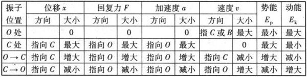 释义 | 描述简谐运动的物理量 1.回复力:F=—kx物体在往复运动期间,回复力的大小和方向均做周期性变化,物体处于最大位移时回复力最大,物体处于平衡位置时回复力为零.物体每经过平衡位置时,回复力方向改变一次. 2.加速度:由周期性变化的回复力产生的加速度是周期性变化的.可见,a与位移x总是同增、减且反向.位移最大时加速度最大,在平衡位置时加速度为零,物体每经过平衡位置一次,加速度方向改变一次. 3.速度:简谐运动是变速运动,因加速度做周期性变化,所以简谐振动不是匀变速运动,它的速度(包括大小和方向)也是周期性变化的.物体处于平衡位置时速度最大,处于最大位移时速度为零且方向发生改变.速度的方向与回复力、加速度、位移等矢量的方向有时相同,有时相反. 4.简谐运动的平衡位置 平衡位置应理解成是振动物体的回复力为零时所处的位置,而不应理解为物体所受合外力为零的位置. 5.简谐运动的位移 振动过程中的位移一般均指物体相对于平衡位置的位移.从平衡位置指向振子所在位置的一个有向线段为振子位移矢量.方向为平衡位置指向振子所在位置,大小为平衡位置到该位置的距离.位移的表示方法是:以平衡位置为坐标原点,规定正方向,则某一时刻振子(偏离平衡位置)的位移用该时刻振子所在的位置坐标来表示. 6.物体在振动的过程中以上各物理量:F、x、a、v等均发生周期性的变化,下面以弹簧振子做简谐运动为例分析各量的变化特征:见下表. 例1 一平台沿竖直方向做简谐运动,一物体置于平台上随台一起运动,当振动平台处于什么位置时,物体对台面的正压力最大?( ). A.当振动平台运动到最高点时 B.当振动平台向下运动过振动中心点时 C.当振动平台运动到最低点时 D.当振动平台向上运动过振动中心点时 分析 本题考查简谐运动的特点及牛顿定律的应用,物体随平台一起做简谐运动,它受到的力是:重力和平台对它的支持力,回复力为这两个力的合力. 物体在最大位移处加速度最大,在最高点加速度方向竖直向下,物体失重,对平台压力小,由牛顿第二定律有mg—N1=ma,即N1=mg—ma· 物体在平衡位置时,有N2—mg=0,即N2=mg. 物体在最低点时加速度方向竖直向上,物体超重,对平台压力大,由牛顿第二定律有N3—mg=ma′,即N3=mg+ma′. 因物体做简谐运动,在最高点和最低点加速度大小相等,有a=a′.可见,当振动平台运动到最低点时,物体对平台的压力最大. 答 C. 例2 如图所示,在质量为M的无下底的木箱顶部用一轻弹簧悬挂质量为m(M≥m)的D、B两物体.箱子放在水平地面上,平衡后剪断D、B间的连线,此后D将做简谐运动,当D运动到最高点时,木箱对地面压力为( ). A.Mg B.(M—m)g C.(M+m)g D.(M+2m)g 分析 当剪断D、B间的连线后,物体D与弹簧一起当作弹簧振子,它们将做简谐运动,其平衡位置就是当弹力与D的重力相平衡的位置初始运动时D的速度为零,故剪断D、B连线瞬间D相对平衡位置的距离就是它的振幅.在没有剪断D、B连线时弹簧的伸长量为x1=2mg/k,在振动过程中的平衡位置时弹簧的伸长量为x2=mg/k,故振子在振动过程中的振幅为 振子在振动过程中的最大加速度为