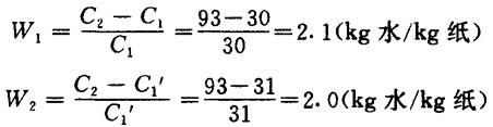 释义 | 提高进烘干部纸页干度的蒸汽节约量的计算 【例】 已知成纸干度为93%,压榨后湿纸干度为30%,求干燥脱水量?如果压榨后湿纸干度为31%,成纸干度不变,那么,可节约多少干燥蒸汽? 解:压榨后湿纸页干度改变前后的蒸发水量分别为: 压榨干度提高前后,蒸发水量的变化为: 故可节约蒸汽为4.76% |