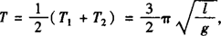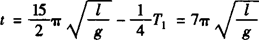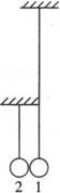 例 如图所示,两个完全相同的弹性小球1,2,分别挂在长l和l/4的细线上,重心在同一水平面上且小球恰好互相接触,把第一个小球向右拉开一个不大的距离后静止释放,经过多长时间两球发生第10次碰撞?(两球碰撞时交换速度) 分析 由于两球相撞时交换速度,则球1从最大位移处摆下来碰静止的球2后,球1静止,球2运动,同样球2摆下来碰撞静止的球1后,球2静止,球1运动,所以总是只有一个球在摆动,两球总是在最低点相碰,球1摆动的周期(无球2时)为 |