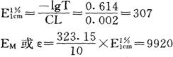 摩尔吸收系数(Molar absorptivity)是紫外分光光度法中吸收系数的一种表示方式。 其意义是1摩尔浓度的溶液,厚度1cm时的吸收度。用ε或EM表示。 摩尔吸收系数多用于研究分子结构。摩尔吸收系数一般不超过105数量级。通常将ε值104的划为强吸收,小于102的为弱吸收,介于两者之间的称为中强吸收。吸收系数ε不能直接测得,需和已知准确浓度的稀溶液测得吸收度换算而得到。 例如,氯霉素(M=323.15)的水溶液在278nm有吸收峰。设用纯品配制100ml(含2.00mg)的溶液,以1.00cm厚的吸收池在278nm处测得透光率为24.3%,则  |