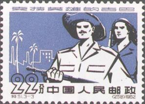 释义 | 支持英雄的古巴 发行日期:1962年7月10日 齿孔度数: 印刷版别:影写版 图幅:36×26 全张枚数:50(5×10) 设计者:卢天骄 印刷:北京邮票厂 (1)8分 守卫祖国的古巴战士 800万枚 (2)10分 收获甘蔗 400万枚 (3)22分 保卫祖国的民兵 100万枚 (1)-(3) 3枚全 |
