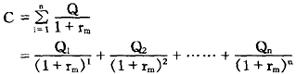 投资乘数等于1减去边际消费倾向的倒数或边际储蓄倾向的倒数。边际消费倾向越大(或边际储蓄倾向越小),其投资增加使收入增加的倍数就越大。但是,凯恩斯认为,客观上存在著一个边际消费倾向递减的心理规律,这就意味著当产量增加导致社会总收入增加以后,收入增量的一部分总会用于储蓄。在这种情况下,假如储蓄没有完全转化为投资,增加的产量就会有一部分无法实现其价值,因而在继后的一段时期里引起生产的减缩和资源的闲置。因此,由边际消费倾向递减规律所引起的收入与消费间的缺口,需要靠储蓄转化为投资来弥补。 为了阐明投资对国民收入的重要性,凯恩斯建立了资本边际效率的概念。他认为,社会的总收入从实物的形态可以分为消费与投资,社会总产品扣除生活消费以外的剩余即为社会的生产消费(投资品)。于是,储蓄转化为投资成为经济均衡的前提条件。凯恩斯认为,投资决定于资本边际效率与利率的对比。资本的边际效率,也就是预期的利润率,它是由资本资产的未来收益与其供给价格之比决定的。资本资产的未来收益折成现值应该等于其供给价格,因此将收益折为现值的折算率即贴现率,也就是资本的边际效率。若以Q1,Q2,……,Qn分别代表历年的资产收益,以C代表供给价格,以rm代表贴现率,则: