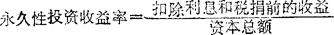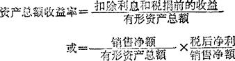 亦称“投资报酬率”。 表明企业的投资获利能力,是衡量特定类型投资收益的尺度。它包括资产总额收益率、永久性投资收益率、主权资本收益率等。  式中的有形资产总额系按年初年末平均占用额计算。资产总额收益率是由营业资产周转率和销售盈利率两个因素决定的。为了提高资产总额收益率,不仅要尽可能降低成本,增加销售,提高销售盈利率;还要经济有效地运用各种有形资产,加快资金的周转速度。  永久性投资收益率排除了短期投资,强调长期性资本投资所能获得的收益。 这两个比率都使用扣除利息和税捐前的收益作分子,是因为利息支出是属于投资人和债权人的“剩余”收益的一部分。  主权资本收益率是净收益与股东的主权资本之比。当资本净值帐面价值接近股票市价时,这个比率非常重要。 因为新发行的股本是按照市价而不是按照帐面价值来筹集的,而且,许多企业常常是联系它们的股票市价来判断其收益能力。 |