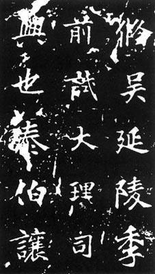 【简介】: 全称《改修吴延陵季子庙记》。唐大曆十四年(779)立。行书。二十行,行三十字。张从申书,魏淸海镌。在江苏丹徒县。 【集评】: 淸郭尙先《芳坚馆题跋》:“张樗寮书《金刚经》勒石焦山者,结体运笔皆自此发源。然张司直侧锋取势,渐近自然,温夫则鼓努爲力,此时代爲之也。……唐人无不圆锋,唯此碑是侧锋取态。” 【赏析】:  唐大曆十四年,当颜眞卿握著他的如椽大笔,正构筑他的前无古人的结构—《勤礼碑》时,张从申却以他细腻、幽深、淸巧的风格,在唐人的正书中竪起另一帜大纛。在他的作品中,你找不到长大夸张的结构,也没有扛肩延颈,力搏秋鹰的凛严的线;从他的笔下流出的是一串紧实、流畅、圆润的音响。字的大小、笔画的擒纵,全无定规,也恰中定规。但那是心灵中溢出的带著几分聪頴的情感的绳墨。 |