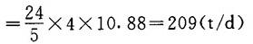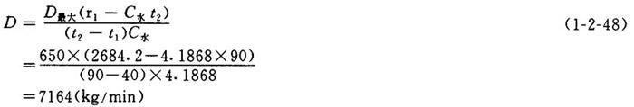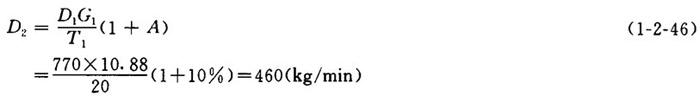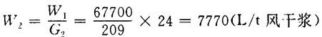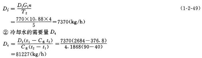 释义 | 放锅热回收计算 【例】已知条件(按蒸煮物料衡算条件): 每锅风干浆产量G1:10.88t/锅 放锅时放出的蒸汽量D1:770Kg/t风干浆 放锅时间T1:20min 蒸煮周期T2:5h 蒸煮锅台数n:4 蒸煮锅锅容V1:125m3 热冷凝液温度t2:90℃ 循环冷却水温度t1:40℃ 冷凝器内蒸汽压力P1:19.6kPa 污热水换热器的清水温度:入口t3:10C 出口t4:70℃ 1.喷射冷凝器需要的冷却水量D 【说明】单位时间内应被冷凝的蒸汽量为放锅时放出的蒸汽量加上吹放锅管路所用的蒸汽量,取其值为放锅蒸汽的10%(A)。 ❶ 应冷凝的平均蒸汽量D2 ❷ 最大蒸汽量D最大 【说明】取最大蒸汽量为平均量的1.4倍。 【公式及计算】 ❸ 冷却水需要量D 【说明】查饱和蒸汽表得,压力P1为19.6kPa的蒸汽温度为104.2℃,热焓r1为2684.2kJ/kg。 【公式及计算】 2.污热水槽的容积V及贮备时间T3 ❶ 四个锅平均每小时的放锅蒸汽量D3 ❸ 污热水量D5 D5=D3+D4=7370+81227=88597(kg/h) ❹ 污热水槽的有效容积V 【说明】取污热水槽的容量Vp为2m3/m3锅容。 【公式及计算】 V=VpV1 (1-2-50) =2×125=250(m3) ❺ 贮备时间T3 【公式及计算】 3.污热水换热器所需面积F ❶ 在换热器内,污热水传给清水的热量Q1 【公式及计算】 Q1=D4C水(t2-t1)=81227×4.1868(90-40) =17004060(kJ/h) ❷ 当换热器为逆流时,温度平均差Δt 【公式及计算】 ❸ 换热器所需面积F 【说明】对换热器的传热系数K〔kJ/(m2.h.℃)〕板式可取8373.6;螺旋式可取6280~8164;管式取4186.8~5652。在此取6280。 【公式及计算】 ❹ 每日每吨风干浆传热面积F1 每日产浆量G2: 每日每吨风干浆传热面积F1 ❺ 每米3锅容传热面积F2 4台蒸煮锅的总容积V总=4×125=500(m3) 每米3锅容传热面积F3 4.放锅热回收可得到的清洁热水量W ❶ 每小时可得清洁热水量W1 【公式及计算】 ❷ 每吨浆所得清洁热水量W2 【公式及计算】 |