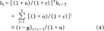 根据跨时预算约束式(5)可得,长期税率应当等于政府债务的利息支付(考虑经济增长因素n),加上实际人均政府支出的长期值gp,即tp=(r-n)bt+gp。结果,偏离长期水平的政府支出差额应当由(正的或负的)债务创造所吸收,即△bt=gt-gp。因此,在政府支出临时很高的情况下,比如在战争时期,就应当用债务融资,而在正常时期,这时gt<gp,应当偿还部分未偿债务。 税收平稳化模型描述了未偿债务的变化方向,但没有给出其最适水平。 实际上,只要李嘉图等价定理成立,债务比率增长率低于rn,既定的债务比率可由可行的原始盈余来维持,那么,债务的任何长期水平都能维持。实际债务政策的寓意是:财政政策(包括削减政府支出)不能以“太高水平”的债务比率来推动。 相反,按照税收平稳化模型,这种论点在因果关系上正好颠倒过来;只有相对于税收比率长期值的支出比率水平过高才能推动这种削减。 倘若政府愿意事先运用税收平稳化,就可能打算偏离其预期最适政策,亦即鉴于时间不一致问题,公布的政策不一定可信。换言之,当正常时期到来时,对政府来说,偿还其部分名义未偿债务不一定是最优的。特别是在此时,从福利观点来考察,拒绝清偿债务也许更有利。 拒绝清偿债务可以采取如下形式,如通货膨胀税、纯粹拖欠或征收一次总付税(如资本税)。 有关文献对时间一致性和拒绝清偿问题进行了大量讨论。例如,如果公布的税收平稳化政策不可信,那么,在不景气时期要求发行债务的最优政策不能实现。特别是如果债务可以部分拒绝清偿,如果债券持有者对这种拒绝清偿有理性预期,那么,有债券存量的均衡不一定可能。 此外,有拒绝清偿的均衡也许存在,但这些均衡比没有拒绝清偿情况下的福利低。所以,公布的税收平稳化政策是否将导致最大社会福利,在很大程度上取决于纳税人对政府将来措施的预期。 按照新古典学派的观点,债务融资具有财富效应。正如在上述分析中所看到的那样,由于债务意味著代际间再分配,这些财富效应将出现。 特别是如果政府债务被认为是净财富,而且r>n,那么,在保持债务比率不变的同时,债务融资取代税收融资意味著债务创造之时的这一代人获得净利益。 可是,在将来,税收必须要提高,以保持债务比率不变,因而将来一代人遭受损失。在封闭经济或充分就业的开放经济下,一般均衡效应也不利于将来一代人的效用水平。这些结果表明,在稳定状态下,一生效用将低于政府债务存量比较高时的效用。 在动态效率r>n情况下,债务比率变化意味著某些人将获益,而牺牲了其他人的利益。只有不导致代际间再分配的帕累托最优政策才是一种债务比率不变的政策。 上述论点与债务创造有关,但保持政府支出不变。可是,倘若债务创造使政府支出增加,而保持税率不变,在有市场失灵的情况下,帕累托改进可能会实现。例如,在个人投资者面临著流动性约束的情况下,为人力资本投资融资可能会改善福利。 综上所述,按照李嘉图学派的观点,在保持税率不变的情况下,债务创造将提高福利,不会产生代际间转让。 按照新古典学派的观点,债务创造伴随著减税(或增加转让支付)不会提高福利。按照凯恩斯学派的观点,在资源没有充分利用的情况下,政府债务的(临时)创造会推动经济达到一种较高的福利水平。 在这种情况下,比如增加对现在活著的一代人转让,可能是一种福利改善工具。 从经验观点来看,值得注意的是政府在其债务政策上实际采用了哪种观点。 在大多数西方国家,债务比率自第二次世界大战之后一直持续下降,这种趋势直到1973年为止。可以说,在这一时期,各国政府采用了税收平稳化战略。 可是,这一时期的特点是增长率较高(n>r),在这种情况下,即使基本预算一直有赤字,但较高的初始债务比率会自动地向下趋近于某一常数值。而且,与税收平稳化模型的规定相反,税率在此时期稳定提高。1973年之后以及在整个80年代,债务比率一直上升。 在此期间,由于石油价格的急剧上升,经济结构发生了某些变化。 在这种情况下,税率应当提高或政府支出削减,以便债务比率保持在其既定的长期值上。实际上,各国政府在80年代所做的是稳定平均税率,并向选民承诺政府支出比率会被削减到足以至少使债务比率不变的程度。 可是,政府支出比率却一直在上升(Roubini and Sachs,1989,p.903-938)。不过,这种承诺似乎表明,政府在此时期或多或少地倾向于追求保持既定的债务比率的新古典学派政策。 税收平稳化模型表明了政府债务的变化方向,但没有确定要达到的债务水平。政府的累积债务充其量是其历史值,而重要的问题是实际政府支出比率是否偏离其长期值,这给通过计算结构性政府支出gp确定最适财政政策加重了负担。 即使政府愿意利用税收平稳化,但在确定gp时也困难重重,因为这需要知道将来一代人对(比如)理想的政府部门相对规模的偏好。除此之外,也很难讲清政府支出增加是否就是结构性的。 从更加实证的观点来看,李嘉图学派的观点和新古典学派的观点有利于在短期政治上有吸引力的措施。例如,在税收平稳化模型中,为了避免必要的增税,试图把即使属于长期的政府支出增加公布为临时增加。在新古典模型中,如果债务比率的稳定是政策目标,重新定义债务比率,不把政治上可行的支出包括在内,即使这些支出不为将来一代人提供收益率。 这为制定非帕累托改