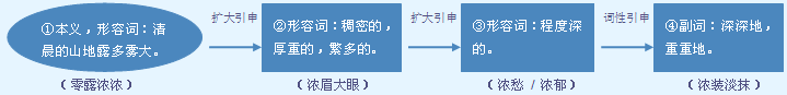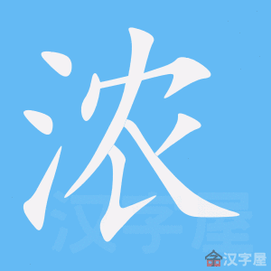 字源解说 农,既是声旁也是形旁,表示清晨上山劳动。浓,篆文 = (水,晨雾)+ (农,清晨上山劳动),造字本义:清晨的山地露多雾大。隶书 将篆文的 写成 。 附 文言版《説文解字》:濃,露多也。从水農聲。《詩》曰:“零露濃濃。” 附 白话版《说文解字》:浓,露水多。字形采用“水”作边旁,“农”是声旁。《诗经》上有诗句唱道:“落下的露水真多。” 引申线索