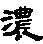 含某种成分多;程度深。可重叠。 a.作谓语,可带补语。 酒味很~|满山红叶,秋色正~|这幅油画的颜色太~|时间虽然很晚了,但大家的游兴还很~|夜色~极了|那绿色~得像翡翠。 b.作定语。 ~墨重彩绘锦绣|~雾锁住山腰,景色一片迷茫|这个高个儿,~~的眉毛,大大的眼睛,还蓄着一绺八字胡。 【近】 稠 厚 【反】 淡 稀 薄 【词语】 浓度 浓眉 浓缩 浓艳 浓重