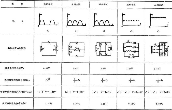 表8.3-58 常见的几种整流电路及特性