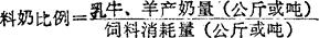 释义 | 料奶比例 畜牧业生产中考核饲料利用率(又称饲料转化率、饲料报酬)常用的指标。 指消耗一定量的饲料所获得的奶量。计算公式为: 由于饲料具体品种很多,营养成分差别较大,为便于比较分析,通常把牛羊奶重量和饲料重量均换算为能量单位(大卡)。料奶比例中料小奶大,表明饲料利用率高、经济效益好,料奶比例取决于乳牛、羊的品种、年龄、饲养水平及料色构成等因素。料奶比例既可以汇总计算,也可以分别按牛、羊计算。 |