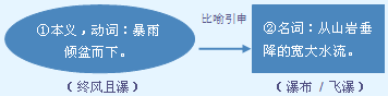 名瀑布。飞瀑用法说明㊀不读 pú。㊁右下不要误写作“水”。另见bào。
