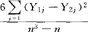 释义 | 斯皮尔曼等级相关检验 假设检验的一种。 英国心理学家斯皮尔曼提出。用于检验两个等级(定序)变量之间的相关性。 随机抽取n个样品,测量它们的两个定序指标Y1与Y2。得到的样本资料为(Y1j,Y2j),(j=1,2,…,n)。 斯皮尔曼给出一种量度Y1与Y2的关联性的指标为rs=1- 有编制好的等级相关系数临界值表可查。当n>30时,一般的表中已查不到相应的临界值,而需采用大样本方法。 由于E(rs)=0,Var(rs)=1/(n-1)。在H0成立的条件下(即Y1与Y2彼此独立、不相关),Z= |