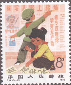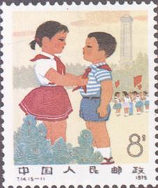 释义 | 新中国儿童 发行日期:1975年12月1日 齿孔度数: 印刷版别:影写版 票幅:31×38.5 全张枚数:50(10×5) 设计者:程传理 印刷:北京邮票厂 (1)8分 授红领巾 1000万枚 (2)8分 写黑板报批林批孔 1000万枚 (3)8分 好好学习 1000万枚 (4)8分 热爱劳动 1000万枚 (5)52分 体育锻炼 200万枚 (1)-(5) 5枚全 |