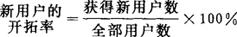 是衡量推销员业绩的一项重要指标。它是用获得的新用户数与全部用户数的比率来表示的。其计算公式如下: