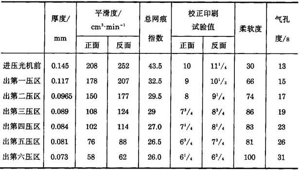 表11-6-29 新闻纸在正常操作中经过不同压区时质量变化的情况