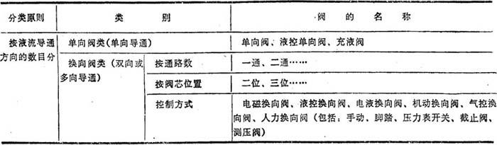 方向控制阀的作用,是接通或切断某些油路,使液流改变方向,从而使执行元件起动、正向运动、停止和反向运动,其分类见表7.6-2。