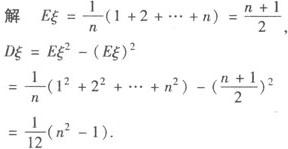 Eη=0×0.01024+1×00768+2×0.2304+3×0.3456+4×0.2592+5×0.7776=3, Dn=(0—3)2×0.01024+(1—3)2×0.0768+(2—3)2×0.2304+(3—3)2×0.3456+(4—3)2×0.2592+(5—3)2×0.0776=1.2. 例3 求证:Dξ=Eξ2—(Eξ)2. 证明 Dξ=(x1—Eξ)2P1+(x2— 例4 设随机变量ξ的分布列为P(ξ= |