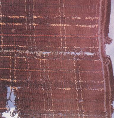 从这件彩罽(音计)袍的残片上可以看出,当时毛纺织技术已经成熟,毛织品在西北少数民族中已经流行。