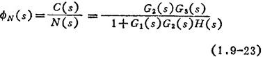 释义 | 方框图与闭环系统的传递函数 2.6.1 方框图的组成及其简化方法 方框图是描述系统运动特性的数学图形,由带箭头的信号线、方框、加减点(综合点)、引出点(分支点)等元素组成,如表1.9-3所示。 表1.9-3 组成方框图的元素 方框图简化过程如图1.9-21所示。即:引出点@、❺ 后移;消除反馈 2.6.2 闭环系统的传递函数 任何复杂的方框图,经简化后,都可变成图1.9-22所示一般形式。由该图给出系统开环传递函数、闭环传递函数等的定义。 R(s)-输入量,C(s)-输出量,B(s)-反馈信号,N(s)-扰动量,E1(s)-偏差 反馈信号B(s)与偏差信号E1(s)之比称为开环传递函数,即 系统工作时,由于输入信号和扰动同时存在,所以对闭环传递函数可利用叠加原理分别定义系统在输入信号作用下的闭环传递函数和在扰动作用下的闭环传递函数。 令扰动量N(s)=0,闭环系统的输出量C(s)与输入量R(s)之比称为系统在输入信号作用下的传递函数,简称闭环传递函数,一般以Φ(s)表示, 当反馈通道传递函数H(s)=1时,系统称单位反馈系统,其闭环传递函数可写成 式中 G(s)==G1(s)G2(s)。 令输入量R(s)=0,闭环系统的输出量C(s)与扰动量N(s)之比称为系统在扰动作用下的闭环传递函数,一般以ΦN(s)表示,即 2.6.3 梅逊公式 对任意结构的方框图,其两变量之间的传递函数可用下面的梅逊公式求出: 式中 n为前向通路的条数:Pk为第k条前向通路的传递函数;△=1-∑La+∑LbLc-∑LdLaLf+…,为方框图的特征式;∑La是所有反馈回路的开环传递函数之和;∑LbLc是每两个互不接触的反馈回路的开环传递函数乘积之和;∑LdLaLf是每三个互不接触的反馈回路的开环传递函数乘积之和;…;△k为第k条前向通路的余因子式,即在方框图中,把与第k条前向通路相接触的反馈回路除去以后的△值。 例1.9-7 利用梅逊公式计算例1.9-6方框图所示系统的传递函数C(s)/R(s)。 于是可得该系统传递函数为 |