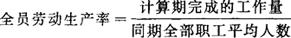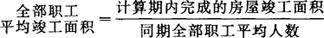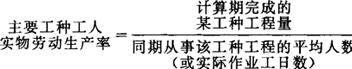 指施工企业在一定时期内制造建筑产品的能力。 用建筑产品数量与相应的劳动消耗量的比值来表示,它是反映施工企业生产成果与劳动消耗量之间的比例关系的技术经济指标。施工企业常用的劳动生产率指标如下: (1)施工企业主要工种工人实物劳动生产率:是根据从事某些主要工种工人,按其完成的实物工程量所计算的劳动生产率。其计算公式如下:  (2)全部职工平均竣工面积:是施工企业全部职工按其完成的房屋竣工面积计算的劳动生产率。其计算公式为:  此指标虽对计算期内竣工的所有房屋进行计算,但并不包括非房屋建筑的施工工程,因此不能综合地反映企业劳动生产率水平。 (3)全员劳动生产率:指施工企业全部职工(包括参加本企业的非本企业职工),按其完成的工作量而计算的劳动生产率。其计算公式为: