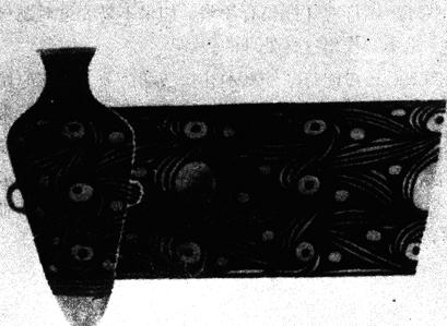 【作品赏析】: 彩陶纹饰除了一些象形性纹样之外,绝大多数是各种几何纹饰,最常见的有十余种纹样。 马家窑文化中曲线构成的旋涡纹饰,是结构最复杂、完美而又有典型意义的几何纹饰之一。它在橙黄色的磨光陶质上,以黑色的点、线和块面,组成行云流水般的和谐纹样。这些纹样往往布满整个器身,并与器物造型完美配合,给人以一种纯真、严谨、亲切、高雅的感觉。而以曲线为主的几何纹构成,则又在这感觉中流露出一种运动的韵律来。 单独看每一个纹样,多数是些简单的点、圆圈或曲线三角形,但它们联成一片后,由于大小、疏密、黑白的配合有致,就显得复杂多变、分外精美。 这个双耳瓶,是提水或作水壶使用的。 它的造型精巧,直到现在还是中国最典型的花瓶的基本形式。在纹样处理上,回转的旋纹与较平缓的水平纹样相配合,加上圈形空白与细小弧形空白,更增加了图案的游动感。 作为器物纹样的几何装饰手法,这件作品反映了我国原始社会中高超的构成技巧,它的精美,仿佛无懈可击。 。  新石器时代 马家窑文化 彩陶纹饰 绘于一只双耳尖底瓶上 藏甘肃省博物馆 |