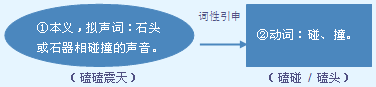 字源解说 盍, 既是声旁也是形旁:拟声词,相当于“咯”或“咔”。磕,篆文 = (石)+ (盍,拟声词,相当于“咯”),造字本义:石头或石器相碰撞的声音。 附 文言版《説文解字》:磕,石聲。从石盍聲。 附 白话版《说文解字》:磕,石头相碰发出的声音。字形采用“石”作边旁,“盍”是声旁。 引申线索