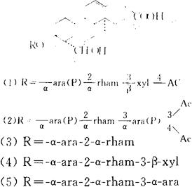 释义 | 无患子皮 【概况】: 异名 槵子肉皮(《濒湖集简方》),无患子夹(《本草汇言》)。 基源 为无患子科无患子属植物无患子的果肉。 原植物 无患子Sapindus mukorossi Gaertn.(S.abruptus Lour.) 余项参见“无患子”条。 。【生药】: 采集 果实成熟时,剥取果肉,晒干。 贮藏 置通风干燥处,防蛀。 【化学】: 含常春藤皂甙元(Hederagenin)及多种皂甙,如无患子皂甙(Sapindoside)A、B、C、D、E,无患子皂甙E1(1)、G(2)、X(3)、Y1(4)、Y2(5)、[1]及无患子倍半萜甙Mukuroyioside)Ⅰ a、Ⅰ b、Ⅱ a、Ⅱ b。上述皂甙具有表面活性剂的作用[2]。 参考文献 [1]Chem Pharm Bull 1983:31(6)∶1998 [2]Phytochemistry 1986;25(4)∶871 [3]CA 1979;91∶52717n 【药理】: 正常家兔ig无患子皂甙0.04mg/kg不影响血压,如同等剂量sc,则可使血压下降25%,对血胆甾醇含量无改变。 对饲喂胆甾醇的实验性动脉粥样硬化的家兔,如早期(第40d开始)po无患子皂甙,可降低血胆甾醇水平,增加卵磷脂,并可降低血压(36.7%)。 毒性 无患子皂甙A~E,对小鼠LD50为:ig1625mg/kg,sc 659mg/kg iv或ip270mg/kg。 参考文献 中药大辞典,上册,上海人民出版社,1977:344 。【药性】:性味 苦、平。 ❶ 《本草拾遗》:“有小毒。” ” 功效 清热化痰,止痛解毒,消积。 主治 喉痹肿痛,胃痛,疝痛,风湿痛,虫积,食滞,无名肿痛。 ❶ 《本草拾遗》:“主喉闭。” 用法用量 内服:煎汤,6~9g;捣汁或研末。 外用:捣涂,含咽或煎水洗。 。【临床应用】:单方应用 ❶ 《广西民间常用草药》:“治风痰:无患子(去核)1只,研烂,开水冲服。” |