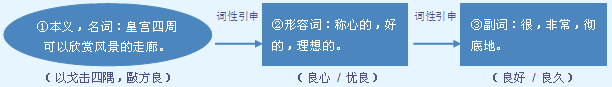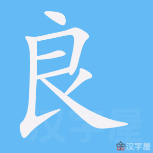 字源解说 “良”是“郎”的本字。良,甲骨文 在宫殿 两侧加通道形状 、 。造字本义:皇宫四周遮风挡雨、可以欣赏风景的走廊。金文 略有变形。篆文 在金文基础继续变形,通道形象完全消失。隶书 在篆文基本上有所变形。当“良”的“走廊”本义消失后,篆文再加“邑”另造“郎”代替。当“郎”的“走廊”本义消失后,又加“广”另造“廊”代替。 附 文言版《説文解字》:良,善也。从畗省,亡聲。 ,古文。 ,亦古文。 ,亦古文。 附 白话版《说文解字》:良,善良。字形采用有所省略的“畗”作边旁,采用“亡”作声旁。 ,这是古文写法的“良”字。 ,这也是古文写法的“良”字。 ,这也是古文写法的“良”字。 引申线索