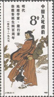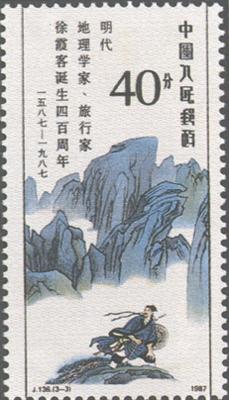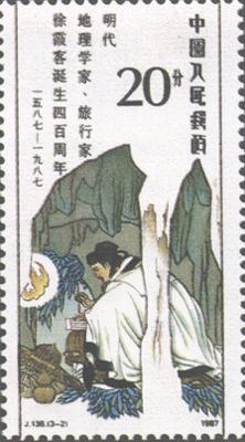 | 释义 | 明代地理学家、旅行家徐霞客诞生四百周年 发行日期:1987年2月20日 齿孔度数: 印刷版别:影写版 票幅:31×57.75 全张枚数:30(10×3) 设计者:高云 印刷:北京邮票厂