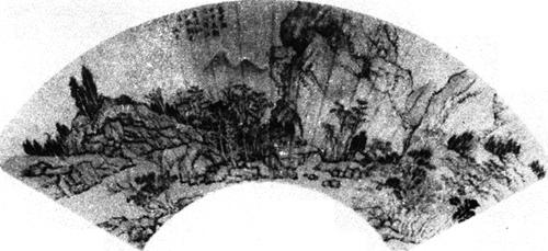 【作品赏析】: 此图中画山峦起伏,断崖突壁。 右边二山伸出画外,不见其峰。山上山下,丛林密集。 茅屋坐落林中,涧溪流畅,其境甚幽。右下溪边,一茅棚架立水上,内有二人对坐论事。全幅展现出江南水乡的春晓气氛。左上作者自题:“春晓图,甲申花朝,仿文待诏画法,似公佩词兄清正。孙逸。”并钤“孙逸私印”(阳文)。左边下一“虚斋藏扇”(阳文)印,系收藏家所钤。 画中山石用爽利而有顿折转挫变化的线条勾括大体,略分出结构再以线条少皴,疏朗而清晰。 阳面明亮处皆空而不皴,接染以花青和淡赭两种颜色。画树和画石的方法差不多,树叶或点、或圈、或勾,以分别树的种类。 远山以花青色一抹而出,上实下虚,既表现了晓雾初开的气氛,又加强了空间感。画法和孙逸后期成熟画风有别,能明显地看出来自文征明的画笔,同时也能寻觅出“新安画派”的早期痕迹。其用笔较文征明劲硬、疏爽,又较渐江的画笔柔而多曲,因而显得格外萧洒、清淡。 。【作者介绍】: 孙逸,明末清初人,字无逸,号疏林,原籍安徽休宁,后流寓芜湖。 《国朝画征录》和《徽州府志》中记有孙逸行状,皆十分简单。因而,他的生平和思想,我们知之甚少。 但孙逸在画史上的地位却一直是稳固的。 他早年居新安,与渐江等人并称为“海阳四家”或“新安四大家”;晚期居芜湖,又与姑熟画派之首萧云从并称为“孙萧”。 。  清 孙逸 扇 纸本设色 藏上海博物馆 |