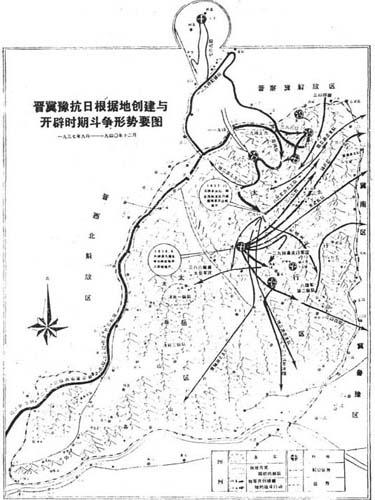 释义 | 晋冀豫边区抗日根据地 晋冀鲁豫抗日根据地的重要组成部分,包括山西东南部,河北西南部,河南黄河以北一小部分。 东至平汉路与冀鲁豫区相接,西抵同蒲路,西北与晋绥边区相接,南迄黄河,北迄正太路与晋察冀边区相接。1937年10月,八路军第一二九师为执行中共中央创建以太行、太岳两山脉为依托的晋冀豫抗日根据地的指示,组成若干支部队和工作团分赴晋东南、晋冀边、冀豫边及冀南地区,开展游击战争,并协同中共地方组织建立抗日民主政权。 至1938年4月,粉碎了日军九路围攻,将敌赶出晋东南,成立了晋冀豫军区,奠定了冀豫边和冀南抗日根据地的基础。 至8月间又开辟了漳河以南、道清路以北的豫北地区,至此晋冀豫边区抗日根据地完全形成。 同年秋,成立中共太行区委和中共太岳区委,由李雪峰、安子文分别担任书记。同时成立中共冀南区委和行政主任公署,李菁玉任区党委书记,杨秀峰任行署主任。冀南抗日根据地基本形成。1940年8月,成立太行、太岳、冀南联合办事处,作为全区统一的民主政权机构。 1941年7月成立了包括太行、太岳、冀南和冀鲁豫边的晋冀鲁豫边区政府,太行、太岳和冀南区遂成为晋冀鲁豫解放区的重要组成部分。 晋冀豫抗日根据地创建与开辟时期斗争形势要图 |