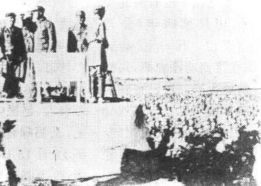 释义 | 晋冀鲁豫野战军 抗日战争胜利后,中共中央决定将各战略区进行调整,建立了野战部队,1945年9月19日晋冀鲁豫野战军成立,刘伯承任司令员,邓小平任政治委员,张际春任副政委兼政治部主任,李达任参谋长。 辖第二、三、四、六、七等纵队和民主建国军,战斗在山西、河北两省南部,山东省西南部和河南省的北部地区。其主力于1947年6月30日,突破黄河天险,千里跃进大别山,战斗在江、淮、河、汉之间,揭开了人民解放军战略进攻的序幕,后称中原野战军。 一九四七年七月,刘伯承邓小平率领晋冀鲁豫野战军强渡黄河,挺进中原。 图为挺进中原前,刘伯承、邓小平、薄一波等领导人在邯郸地区检阅南下部队。 |