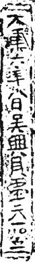长三十六点三厘米,厚五点三厘米。文‘太康六年八月吴兴贝灵元所立’。阳文隶书。书法圆浑拙朴,于率意中见天趣。