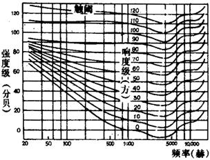 释义 | 晌度 声波作用于耳时,人所觉察到的声波能量的大小。常用的数字标度是*宋。宋与纯音强度的关系是:L=0.06I03,其中L是以宋为单位的响度,I是纯音强度。这公式表明响度与1000Hz强度的0.3方成正比。纯音响度主要取决于声强,也与频率和波形有关。 等响曲线与强度级的关系。各条曲线标著以方计量的响度级 |