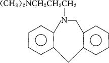 C19H24N2=280.41 CAS-73-07-4 5,6-二氢-N-[3-(二甲氨基)丙基]-11H-二苯并[b,e]氮杂 。 5,6-Dihydro-N-[3-(dimethylamino)propyl]-11Hdibenz[b,e]azepine. 6,11-二氢-N,N-二甲基-5H-二苯并[b,e]氮杂 -5-丙烷胺。 6,11-Dihydro-N,N-dimethyl-5H-dibenz[b,e]-azepine-5-propanamine. 5-[3-(二甲氨基)丙基]-5,6-二氢吗烷啶。 5-[3-(Dimethylamino)propyl]-5,6-dihydromorphanthridine. 抗抑郁药。 环丙安定。 Prazepine,Propazepine. INN,USAN.