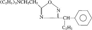 C17H25N3O=287.40 CAS-5696-09-3 N,N-二乙基-3-(1-苯丙基)-1,2,4-噁二唑-5-乙烷胺。 N,N-Diethyl-3-(1-phenylpropyl)-1,2,4-oxadiazole5-ethanamine. 5-[2-(二乙氨基)乙基]-3-(α-乙苄基)-1,2,4-噁二唑。 5-[2-(Diethylamino)ethyl]-3-(α-ethylbenzyl)-1,2,4-oxadiazole. 消炎镇痛药,解痉药,镇咳药。 Proxazole,Aerbron,Gastress,Mendozal,Nipodar,Propaxoline,Proxal,Recidol,Solacil,PZ 17105. INN,USAN.  |