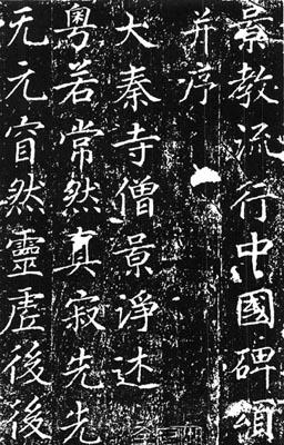 释义 | 景敎流行中国碑 【简介】: 唐·吕秀巖书于建中二年(781)。搨本。正书。凡三十二行,每行六十二字。24.3×14.7cm。现存陕西博物馆。刊于日本《书道全集》(十)。 【赏析】: 此碑书风与颜眞卿《多宝塔碑》相类似,只是比颜《多宝塔碑》纤瘦了许多,也不如其紧密。然而也因此而显得空灵,似乎有初唐虞、褚的遗意。此碑点书笔笔呼应,血脉贯通;结体工整而不刻板,亦爲唐碑中之可观者。 |