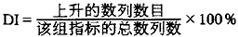 亦称“景气动向指数”或“扩散指数”。在景气指标的基础上,经过一定的数学处理,用于预测经济发展状态和发展趋势转折点的一种数量指标。以DI表示。扩散指数是从总体上描述正在上升的各个组成部分数列的百分比。计算方法较为简单。第一步,用移动平均法来消除数列的不规则波动,使数列较为稳定。第二步,记录对领先的、一致的和滞后的各组指标在一定时期内正在上升的数列的数目。第三步,把每组正在上升的数列数目除以该组数列的总数,并转换成百分比。即  扩散指数的范围是在0%和100%之间。0%,50%和100%这几个值分别表示:在一组指标内没有数列或者有一半数列或者所有数列正在上升。DI大于50%表明上升的数列比下降的数列多,经济处于上升阶段,反之则处于下降收缩阶段,若一半的数列上升,一半的数列正在下降,扩散指数的值为50%,扩散指数曲线与DI=50%线的交点,就是经济循环的转折点。 DI曲线的优点是能够明确地测出景气动向的转折点(Turn Point),其缺点是缺乏量感,不能测出经济波动的幅度。 在工业问卷调查中,把判断调查的结果制成DI形式的时间序列,就是判断数据的DI。例如回答某一问题选择A的企业数的比重为46%,选择B的企业数的比重为52%,选择C的企业比重为2%,此时DI指数为A比重减C比重,A-C=46%-2%=44%。在下一次调查中,A为43%,C为2%,DI为41%。也可以把计算出的扩散指数DI制作成曲线图。 DI是一个指数,只能反映两个时点间的变化方向和由此组成的时间序列的变化规律。 |